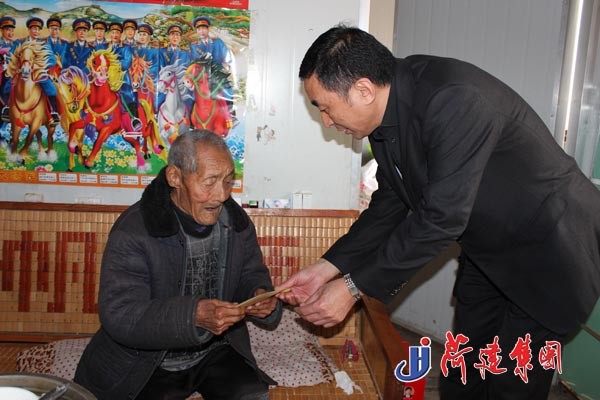 集團(tuán)黨委副書記、紀(jì)委書記任永信將2000元救助金送到劉一常老人手中