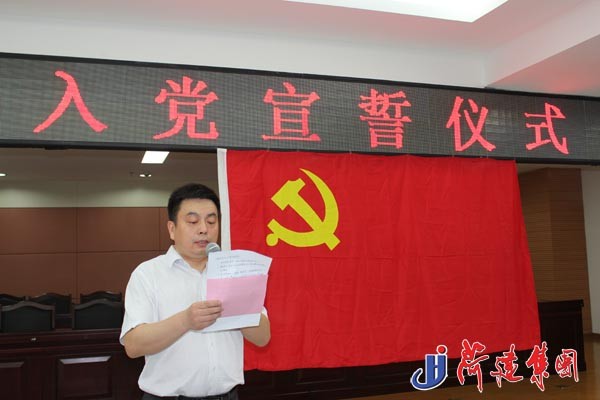 面對黨旗,陳松柏同志帶領(lǐng)100余名黨員宣讀誓詞:“我志愿加入中國共產(chǎn)黨,擁護黨的綱領(lǐng),遵守黨的章程……”。