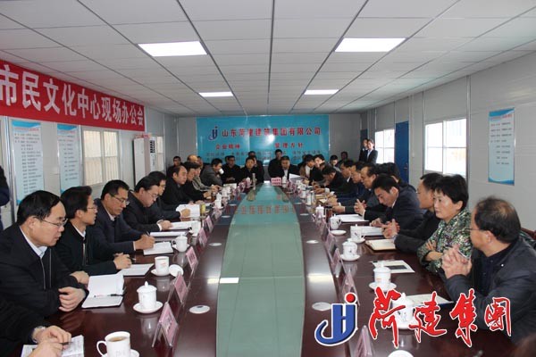 丁志剛代表菏澤市市民文化中心建設領導詳細匯報了項目的規(guī)劃設計、手續(xù)辦理、資金籌集、建設工期及當前存在的問題等相關情況。