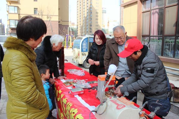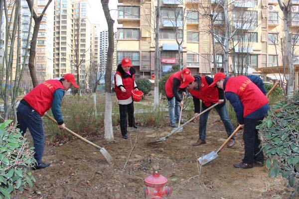 本次活動,志愿者們開展了種草綠化、清理衛(wèi)生、購房建言、工程回訪、法律咨詢、裝修咨詢及免費(fèi)義診、免費(fèi)理發(fā)和免費(fèi)配鑰匙等一系列活動。在種草綠化活動中,大家配合默契,分工協(xié)作,發(fā)揚(yáng)不怕臟、不怕累的優(yōu)良傳統(tǒng),一起揮鍬鏟土、翻土耕耘,并不時交流探討種草經(jīng)驗,用實際行動踐行了“奉獻(xiàn)、友愛、互助、進(jìn)步”的青年志愿者精神,不僅為小區(qū)環(huán)境增光添彩,提高居民愛綠、護(hù)綠意識,而且綠化了小區(qū)的自然環(huán)境,得到了小區(qū)居民的一致好評。