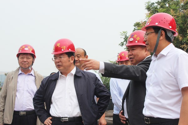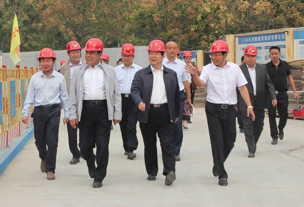 集團總經(jīng)理苗林(右二)向陳平市長匯報項目建設(shè)情況