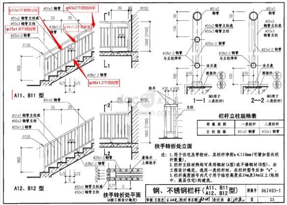 室內選用國標圖集06j403-1中P23頁A11B11型,部分不銹鋼管以紅色標注為準,其余按圖集施工,詳附圖。欄桿高度滿足圖紙及規(guī)范要求,出完成面部分均為不銹鋼構件。滿足設計規(guī)范、圖集及施工驗收規(guī)范要求。構件厚度要求滿足要求。 |