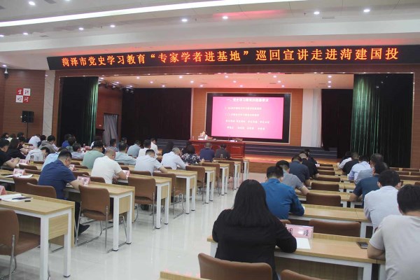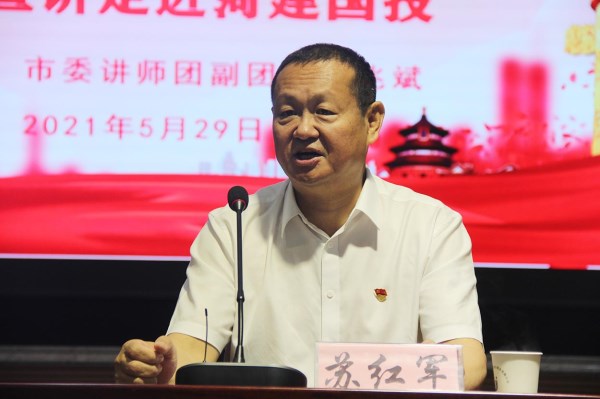 按照市委統(tǒng)一部署,5月29日,菏澤市黨史學(xué)習教育“專家學(xué)者進基地”巡回宣講走進菏建國投公司。市委講師團副團長徐兆斌以“開展黨史學(xué)習教育,汲取強大奮進力量”為主題,講了一堂生動而又深刻的中共黨史學(xué)習教育專題黨課。菏建國投黨委副書記、總經(jīng)理蘇紅軍主持會議并作重要講話。菏建國投領(lǐng)導(dǎo)班子,國投機關(guān)全體工作人員,各權(quán)屬單位領(lǐng)導(dǎo)班子全體人員,三級單位主要負責人參加會議。