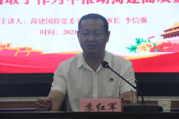 按照菏建國投黨委黨史學(xué)習(xí)教育工作安排,7月3日,菏建國投黨委書記、董事長李信強(qiáng)以“銘刻百年黨史,熔鑄理想信念,在勇于擔(dān)當(dāng)、敢于作為中推動(dòng)菏建高質(zhì)量發(fā)展”為主題,為公司全體黨員上了一堂生動(dòng)的黨史學(xué)習(xí)教育專題黨課。菏建國投黨委副書記、總經(jīng)理蘇紅軍主持會(huì)議。菏建國投黨委班子成員、機(jī)關(guān)全體,各權(quán)屬單位和三級(jí)單位領(lǐng)導(dǎo)班子全體參加會(huì)議。
