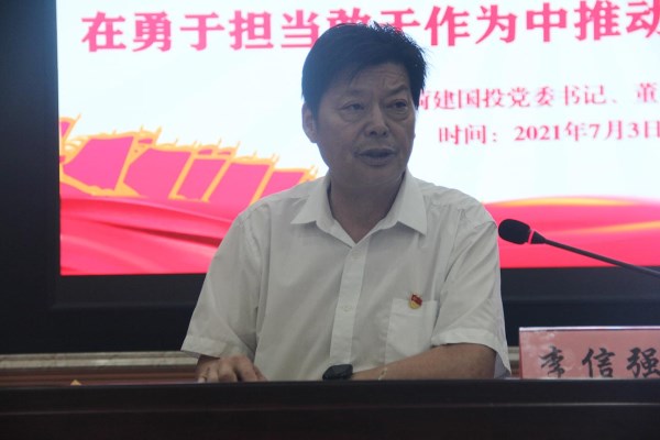 李信強(qiáng)從“重溫黨的歷史,激發(fā)愛國熱情”“回顧菏建奮斗歷程,引發(fā)職工共鳴”“堅(jiān)定理想信念,做實(shí)現(xiàn)共產(chǎn)主義理想的踐行者”三個(gè)方面,帶領(lǐng)全體黨員學(xué)習(xí)了中國共產(chǎn)黨的百年光輝歷程,梳理了黨史發(fā)展總體脈絡(luò),回顧了黨歷史上的偉大節(jié)點(diǎn),重溫了菏建70年創(chuàng)業(yè)歷程。并對菏建國投全體黨員提出了希望,要堅(jiān)定理想信念,做實(shí)現(xiàn)共產(chǎn)主義理想的踐行者,要以黨史學(xué)習(xí)教育開展為契機(jī),加強(qiáng)國有企業(yè)“根”和“魂”的建設(shè),用黨建引領(lǐng)企業(yè)發(fā)展,用黨建保障企業(yè)經(jīng)營,用黨建推動(dòng)企業(yè)改革,全力以赴地將菏建國投建設(shè)成為菏澤市國有企業(yè)中的領(lǐng)航者。