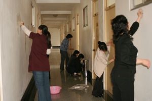 為使慶“五一”迎“五四”活動豐富多彩,二OO九年四月二十八日上午,菏建集團(tuán)工會、團(tuán)委和集團(tuán)機(jī)關(guān)黨支部組織機(jī)關(guān)人員近四十人,集中進(jìn)行了擦洗辦公樓內(nèi)墻壁義務(wù)勞動。