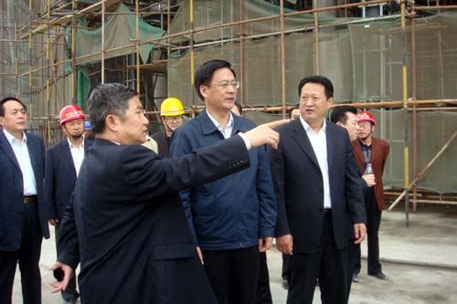 在市領(lǐng)導(dǎo)趙潤田、劉士合、王文生、王浩、支建立、高木斗、劉勇陪同下,劉偉一行深入施工現(xiàn)場(chǎng),認(rèn)真察看菏澤大劇院廣場(chǎng)建設(shè)情況和周邊環(huán)境景觀效果圖,聽取工程概況、規(guī)模、功能等方面的情況匯報(bào),趙潤田書記對(duì)大劇院整體設(shè)想、規(guī)劃設(shè)計(jì)和使用功能等情況進(jìn)行了介紹。省委副書記劉偉一行穿過鋼管搭設(shè)的腳手架,深入到大劇院一、二層作業(yè)現(xiàn)場(chǎng),詳細(xì)了解各專項(xiàng)功能和作業(yè)進(jìn)展情況。劉偉對(duì)菏澤大劇院高起點(diǎn)規(guī)劃、高標(biāo)準(zhǔn)建設(shè)給予高度評(píng)價(jià),對(duì)工程的質(zhì)量和進(jìn)度表示滿意。他指出,要充分認(rèn)識(shí)建設(shè)大劇院的重要意義,堅(jiān)持把社會(huì)效益放在首位,以更加奮發(fā)有為的精神狀態(tài)、更加求真務(wù)實(shí)的工作作風(fēng),進(jìn)一步增強(qiáng)做好文化基礎(chǔ)設(shè)施建設(shè)的責(zé)任感和使命感;要把群眾滿意作為開展學(xué)習(xí)實(shí)踐科學(xué)發(fā)展觀活動(dòng)的重要標(biāo)準(zhǔn),堅(jiān)持高標(biāo)準(zhǔn),體現(xiàn)高品位,統(tǒng)籌協(xié)調(diào),加快大劇院建設(shè)步伐,在質(zhì)量上、時(shí)間上予以保障,確保工程質(zhì)量和施工安全,使之成為菏澤城市一張靚麗的名片。