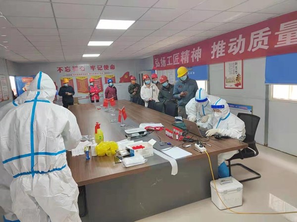 ![]() 公司邀請市婦幼保健院醫(yī)護(hù)人員進(jìn)項目、下工地為員工進(jìn)行核酸檢測 |