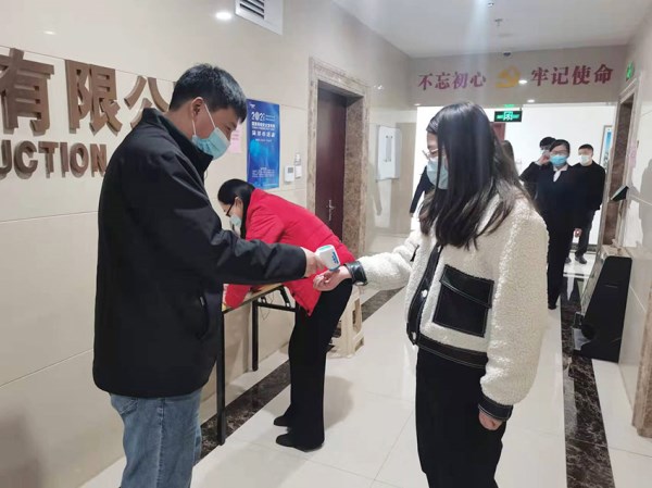 ![]() 在辦公樓和各項目嚴(yán)格落實戴口罩、測體溫、驗“兩碼”等措施 |