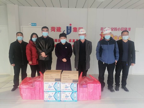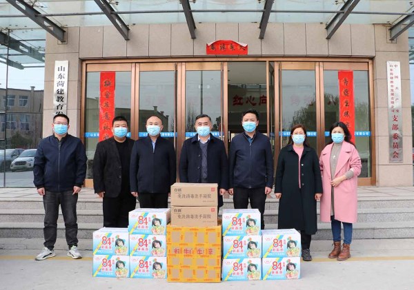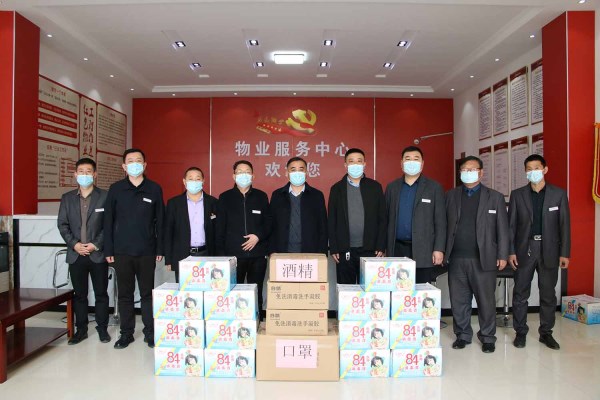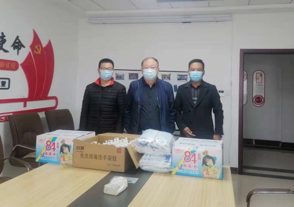 ![]() 為一線干部職工送去口罩、84消毒液、消毒凝膠、酒精等防疫物資 |