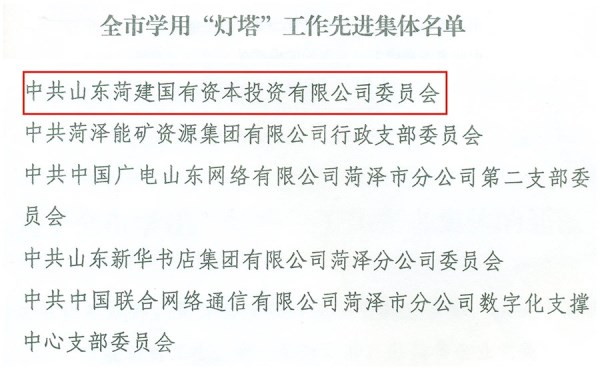 日前,菏澤市委組織部發(fā)布了《關(guān)于全市學(xué)用“燈塔”工作先進(jìn)集體的通報》,中共山東菏建國有資本投資有限公司委員會榮獲“菏澤市學(xué)用‘燈塔’工作先進(jìn)集體”稱號。
