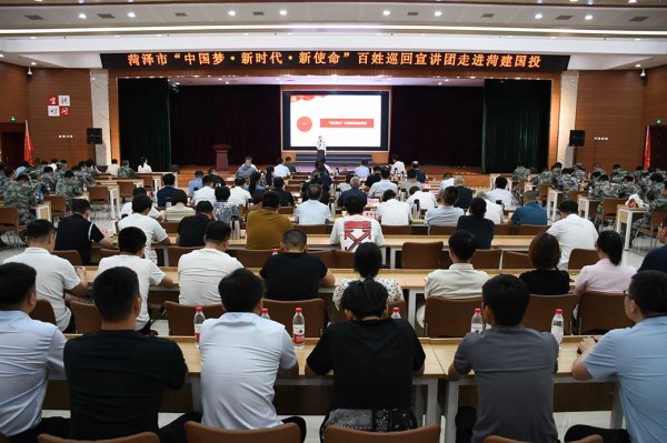 為推動黨的二十大精神在菏澤落地生根,激發(fā)全市廣大黨員干部群眾積極投身新時代社會主義現(xiàn)代化建設,7月12日,菏澤市“中國夢·新時代·新使命”百姓巡回宣講團走進菏建國投開展宣講活動。市委宣傳部副部長、市新聞辦主任陳新振,市委講師團團長徐明軍,市委講師團副團長袁增華,市國資委二級調研員郭抒青,菏建國投黨委書記、董事長李信強,菏建國投黨委副書記、總經理仝金安,市委宣傳部理教科科長萬偉等領導出席會議。菏建國投領導班子成員,國投機關全體人員,各權屬單位領導班子全體,菏澤市民兵應急營一連、二連全體民兵參加會議。