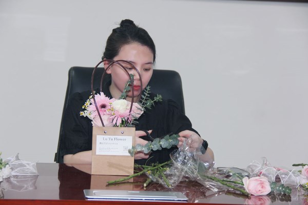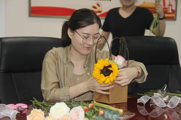 活動(dòng)中,專業(yè)插花師現(xiàn)場介紹鮮花的品質(zhì)和寓意,從花材選取、枝葉綁剪、色彩搭配等插花技巧進(jìn)行講授,并同步演示插花工具的使用和插花步驟,使大家對插花藝術(shù)有了更深層次的認(rèn)識(shí)。隨后,大家充分發(fā)揮自己的想象力和創(chuàng)造力,采取獨(dú)立完成或自由組隊(duì)共同完成的方式,選擇合適的花材及容器,用自己的巧手修剪、搭配花枝,將各色鮮花插入容器中裝扮成美麗的花束。