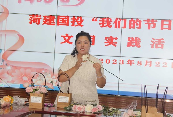 活動(dòng)現(xiàn)場,菏建國投黨委委員、黨群工作部部長杜令瑞首先向大家介紹了七夕節(jié)的起源和七夕節(jié)的習(xí)俗,并希望大家在活動(dòng)過程中學(xué)習(xí)插花知識(shí)、感受節(jié)日的美好,同時(shí)祝福公司廣大青年職工都能早日得遇良緣,組建幸福的家庭。