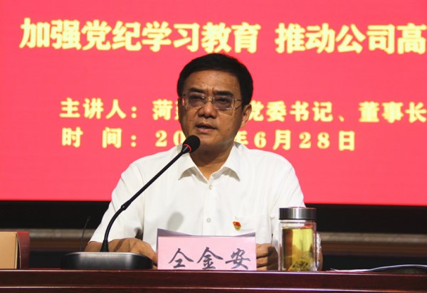 為深化黨紀學習教育,進一步增強公司黨員干部的紀律意識和規(guī)矩意識,推動全面從嚴治黨向縱深發(fā)展,按照上級要求和黨紀學習教育工作部署,6月28日,菏建國投黨委書記、董事長仝金安以“加強黨紀學習教育 推動公司高質(zhì)量發(fā)展”為主題,為公司黨員干部上了一堂生動的黨課。菏建國投機關(guān)全體黨員,各黨(委)支部委員參加會議。
