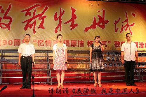 為紀念建黨90周年,6月28日晚,我公司參加了在大劇院廣場舉行的“放歌牡丹城”——慶祝建黨90周年“憶傳統(tǒng)、倡廉潔、揚正氣”歌曲傳唱活動。本活動由市紀委和市監(jiān)察局主辦,我公司任永信、王建華、李霞、趙善淼、孟艷麗、侯仰書參加了本次活動,表現(xiàn)出了菏建集團良好的精神面貌,受到了觀眾的高度贊揚。