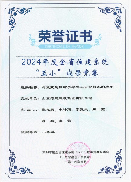 近期,由菏建集團(tuán)職工張志豪為第一完成人編寫的“花籃式懸挑腳手架施工安全技術(shù)的應(yīng)用”項(xiàng)目在全省住建系統(tǒng)“五小”成果競(jìng)賽中脫穎而出,榮獲一等獎(jiǎng)。