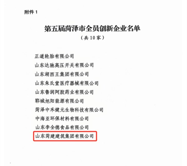 菏建集團榮獲“菏澤市全員創(chuàng)新企業(yè)”稱號
