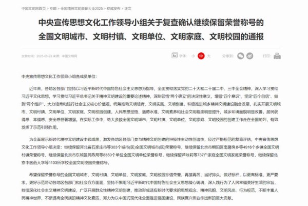 5月23日,中國文明網(wǎng)發(fā)布《中央宣傳思想文化工作領(lǐng)導(dǎo)小組關(guān)于復(fù)查確認(rèn)繼續(xù)保留榮譽(yù)稱號的全國文明城市、文明村鎮(zhèn)、文明單位、文明家庭、文明校園的通報(bào)》,菏建國投順利通過復(fù)查,繼續(xù)保持“全國文明單位”榮譽(yù)稱號。