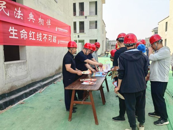 按照“民法典宣傳月”和“安全生產(chǎn)月”活動要求,5月29日,菏建國投深入東方樾施工項目,開展“《民法典》與《安全生產(chǎn)法》進(jìn)工地”專題普法宣傳活動,為高溫下奮戰(zhàn)的建設(shè)者們送上“法治清風(fēng)”與“安全護(hù)盾”。菏建國投副總經(jīng)理徐龍震、安全總監(jiān)晁勇、法律顧問鞏海巖以及有關(guān)部室成員參加活動。