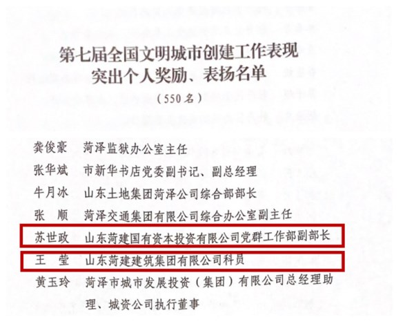 10月13日,菏澤市精神文明建設(shè)工作會(huì)議召開,對(duì)全國文明城市創(chuàng)建過程中涌現(xiàn)的先進(jìn)集體與個(gè)人進(jìn)行集中表彰。菏建國投公司憑借扎實(shí)有力的創(chuàng)城舉措與顯著成效,獲評(píng)“第七屆全國文明城市創(chuàng)建工作表現(xiàn)突出集體”;菏建國投職工蘇世政、菏建集團(tuán)職工王瑩因在創(chuàng)城一線的積極作為與無私奉獻(xiàn),榮獲“第七屆全國文明城市創(chuàng)建工作表現(xiàn)突出個(gè)人”稱號(hào)。
