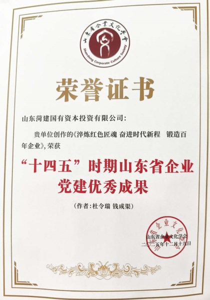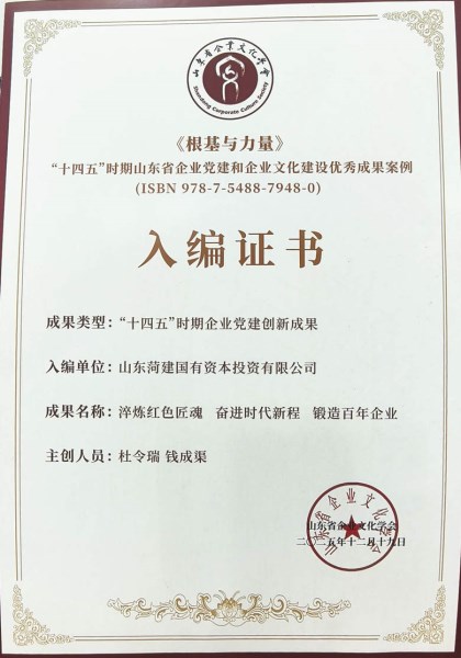 12月19日至20日,山東省企業(yè)文化建設(shè)發(fā)展大會(huì)暨《根基與力量》——“十四五”時(shí)期山東省企業(yè)黨建和企業(yè)文化優(yōu)秀成果案例首發(fā)儀式在威海隆重舉行。菏建國(guó)投憑借在黨建與企業(yè)文化融合發(fā)展領(lǐng)域的扎實(shí)實(shí)踐與突出成效,被評(píng)為“‘十四五’時(shí)期山東省企業(yè)黨建品牌創(chuàng)建示范單位”;杜令瑞、錢成渠創(chuàng)作的《淬煉紅色匠魂 奮進(jìn)時(shí)代新程 鍛造百年企業(yè)》獲評(píng)“‘十四五’時(shí)期山東省企業(yè)黨建優(yōu)秀成果”,并入選《根基與力量》——“十四五”時(shí)期山東省企業(yè)黨建和企業(yè)文化優(yōu)秀成果案例。