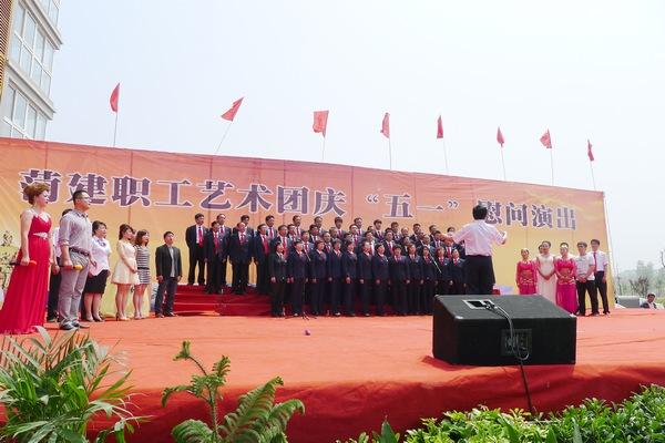為響應(yīng)菏澤文化強(qiáng)市建設(shè),進(jìn)一步豐富職工的業(yè)余文化生活,4月29日上午,值“五一”國(guó)際勞動(dòng)節(jié)和“五四”青年節(jié)來(lái)臨之際,菏建職工藝術(shù)團(tuán)到定陶濱河春天工地進(jìn)行慰問(wèn)演出。