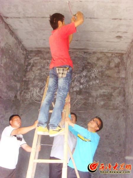 在為閆玉娥家安裝電線的時候,高剛垛(右二)也刻意躲避著鏡頭。