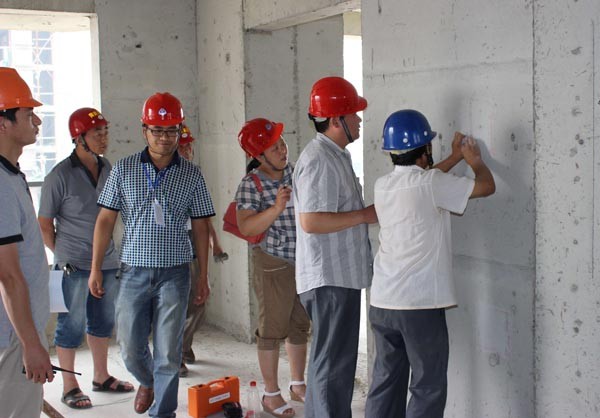 檢查組現(xiàn)場(chǎng)聽(tīng)取了施工單位關(guān)于工程創(chuàng)優(yōu)的情況匯報(bào),觀看省優(yōu)質(zhì)結(jié)構(gòu)杯工程施工創(chuàng)優(yōu)錄像,聽(tīng)取建設(shè)單位、監(jiān)理單位對(duì)工程建設(shè)的評(píng)價(jià),核查技術(shù)資料,檢查操作層質(zhì)量及實(shí)體觀感質(zhì)量,并對(duì)構(gòu)件強(qiáng)度、鋼筋保護(hù)層、板厚及允許偏差項(xiàng)目進(jìn)行了實(shí)測(cè)實(shí)量。