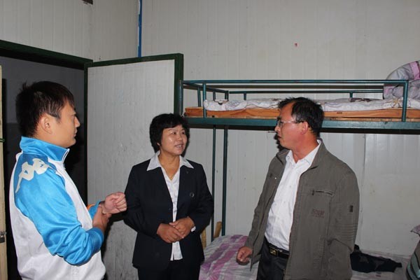 考核人員實(shí)地查看建筑技校學(xué)生宿舍