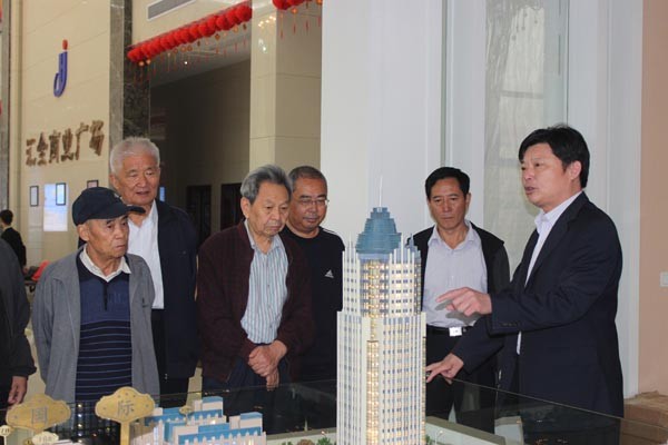 集團(tuán)黨委書記、董事長、總經(jīng)理李信強(qiáng)向老同志介紹集團(tuán)樓盤